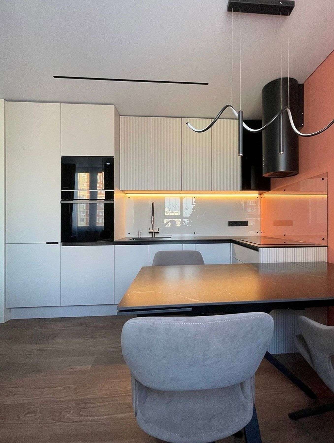 • Двухуровневая кухня в современном стиле